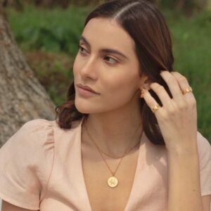 Esta joya es elaborada en un proceso totalmente manual en bronce con baño en oro de 24k o bronce con baño en plata ley 925.