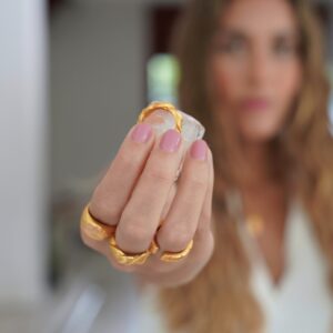 Esta joya es elaborada en un proceso totalmente manual en bronce con baño en oro de 24k o bronce con baño en plata ley 925.