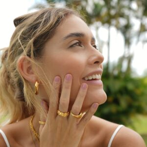 Anillo cerrado elaborado a mano en bronce con baño en oro de 24 Kt.